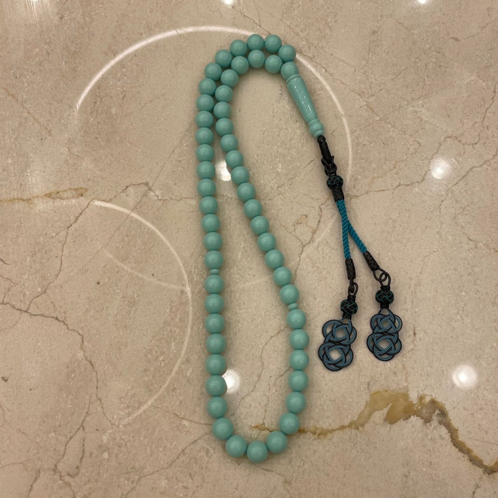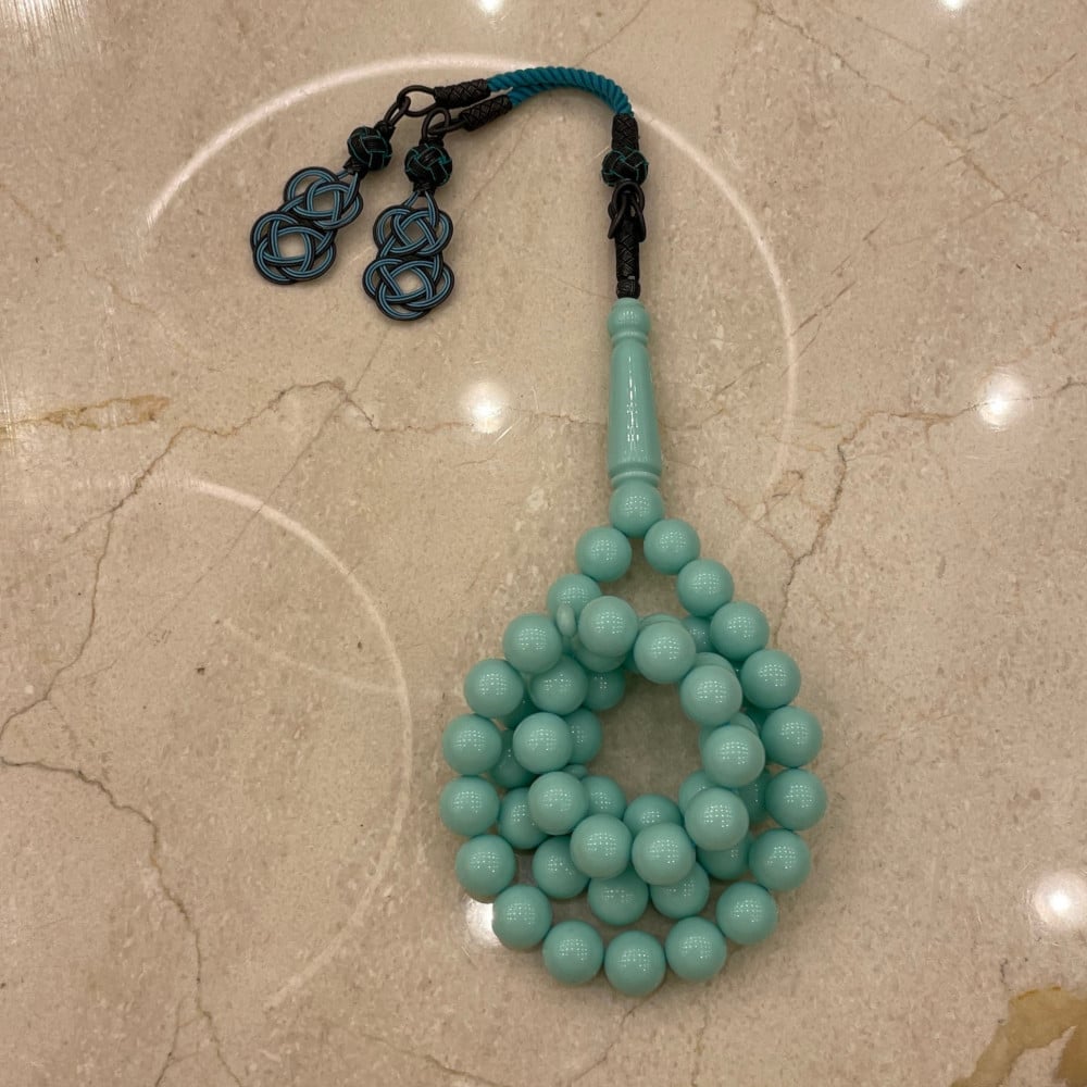 سبحة بكلايت عدد الخرز 51 مقاس الخرز 10 مل بفواصل وكركوش فضة طربزونية الوان متعددة
