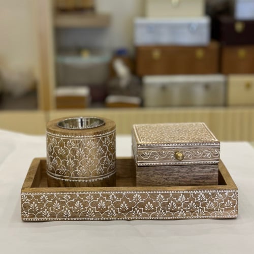 طقم مبخرة هندية خشب ذهبي او ابيض