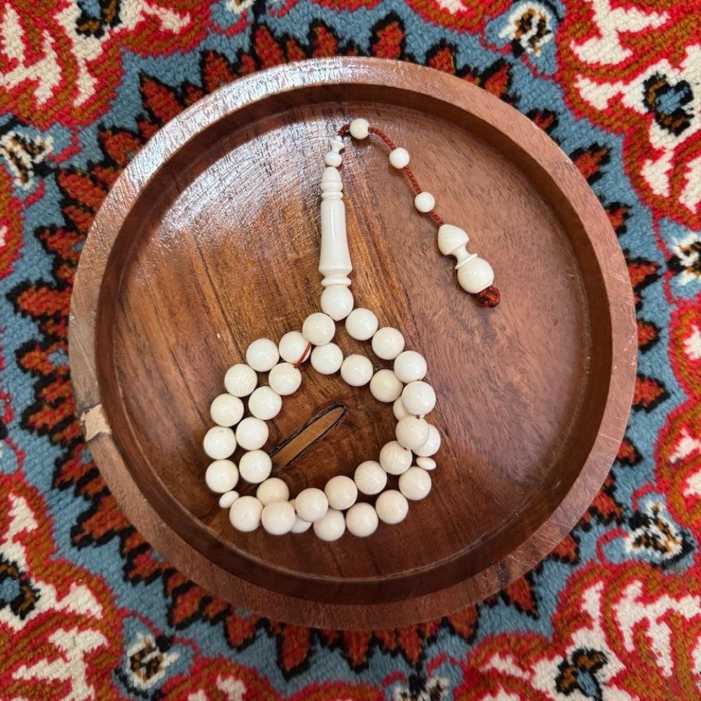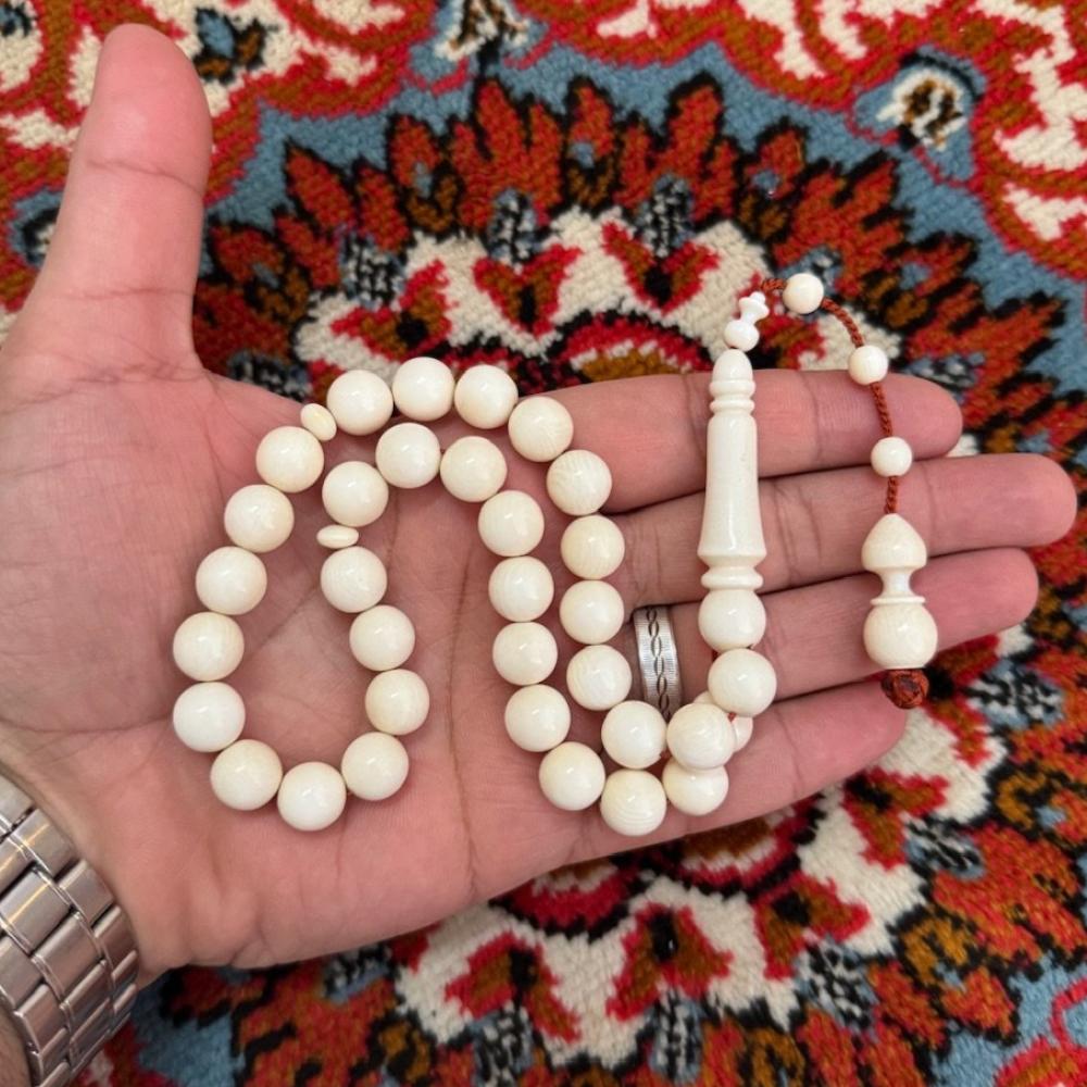 سبحة عاج ناب الفيل الطبيعي الوزن 37.7 جرام عدد الخرز 33 مقاس الخرز 10 مل