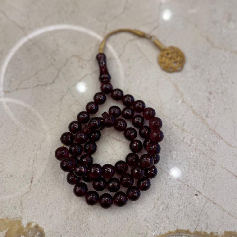 سبحة زعفراني برائحة زعفرانية فواحه لون احمر جميل وكركوشة فضة طربزونية