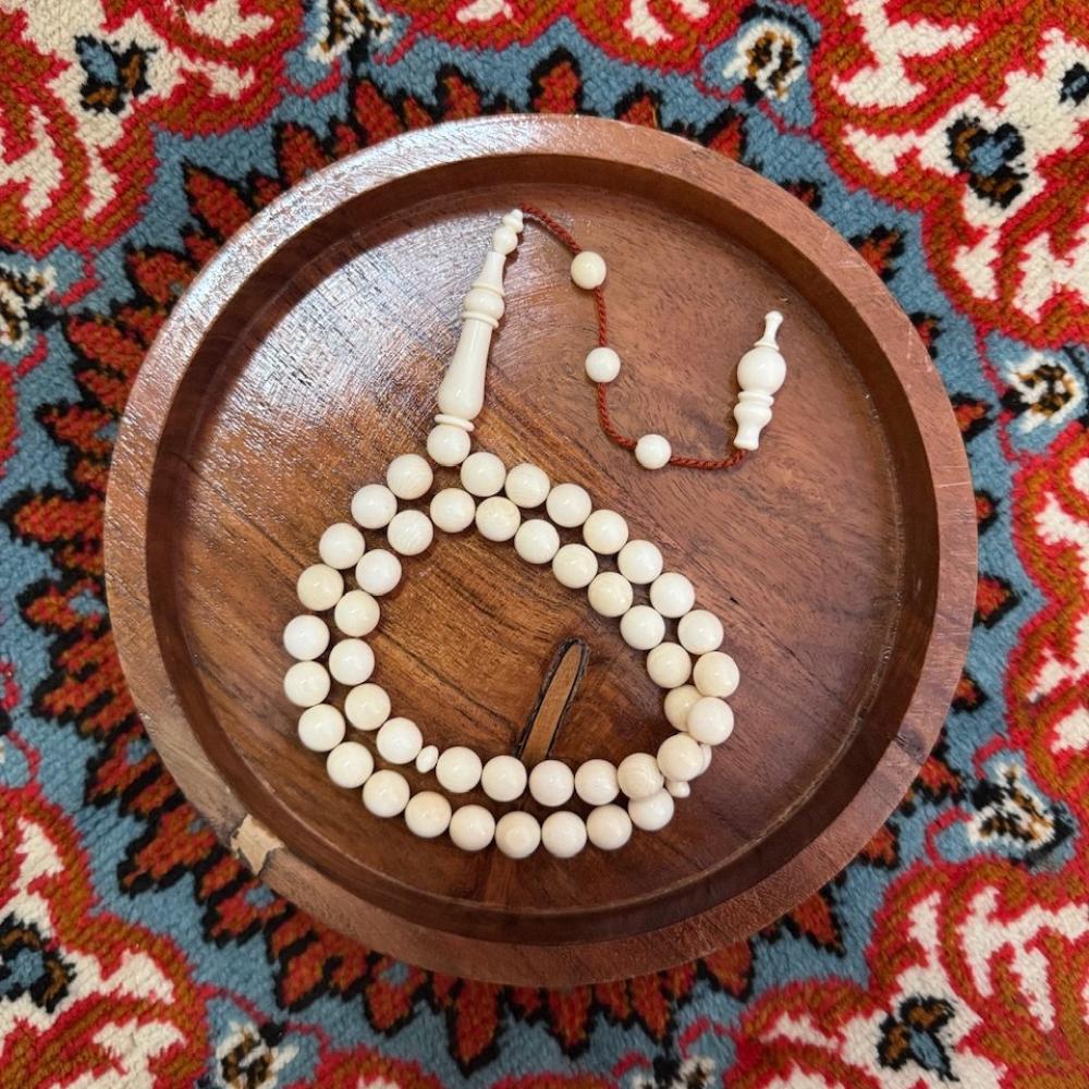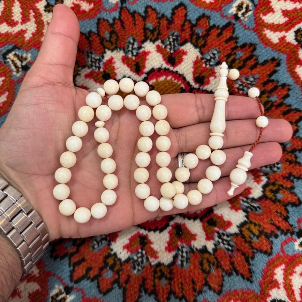 سبحة عاج ناب الفيل الطبيعي عدد الخرز 45 خرزة الوزن 36.7 جرام مقاس الخرز 10 مل