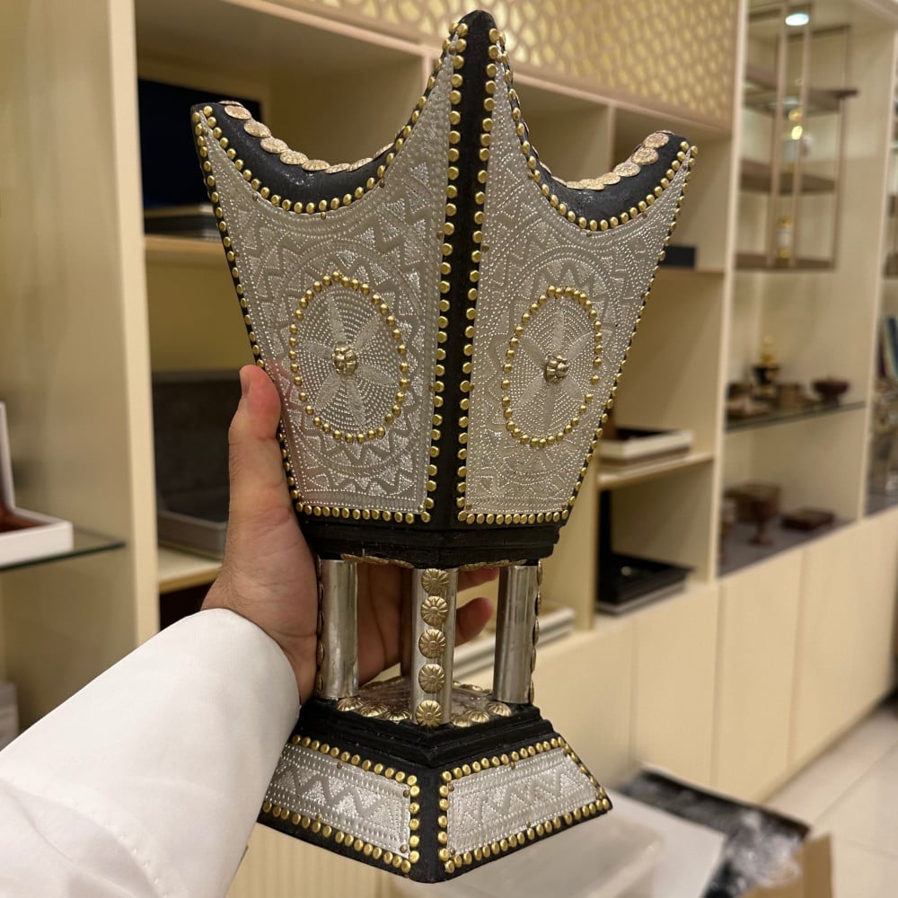 مبخرة حائلية ملكية خشب اثل ناشف والمنيوم منقوش بدقة ومسامير نحاسية ارتفاع 29 سم