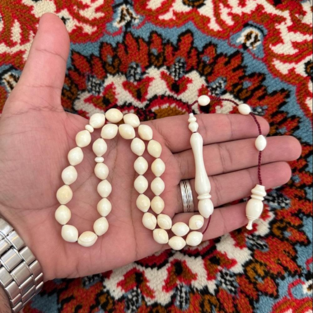 سبحة عاج ناب الفيل الطبيعي الوزن 22.8 جرام عدد الخرز 33 خرزة مقاس الخرز 10*8 مل