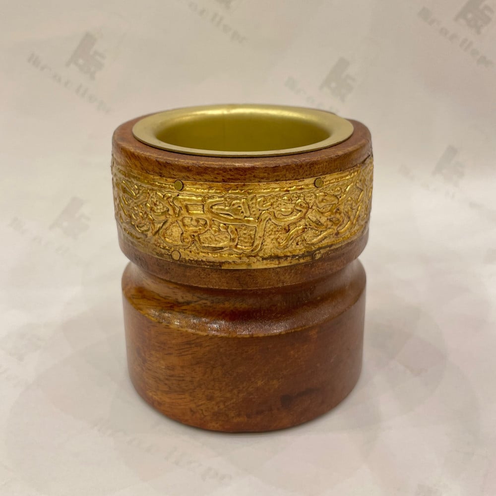 مبخرة هندية خشبية جميلة باللون البني والنحاس الذهبي او اللون الابيض والنحاس الفضي بارتفاع 8 سم وقطر 8 سم