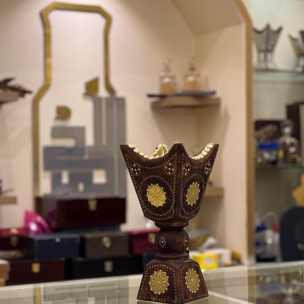 مبخرة حائلية من خشب الاثل بتصميم جديد وجميل جدا مطعم بالنحاس ارتفاع المبخرة ٢٨ سم