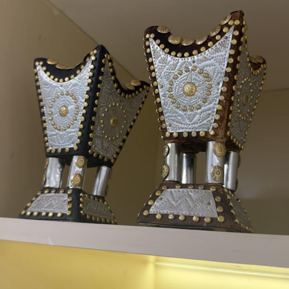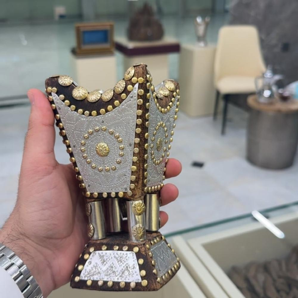 مبخرة حائلية ملكية بارتفاع 14 سم عمل حرفي رائع ودقيق من خشب الاثل ومسامير نحاسية والمنيم منقوش يدويا بالكامل