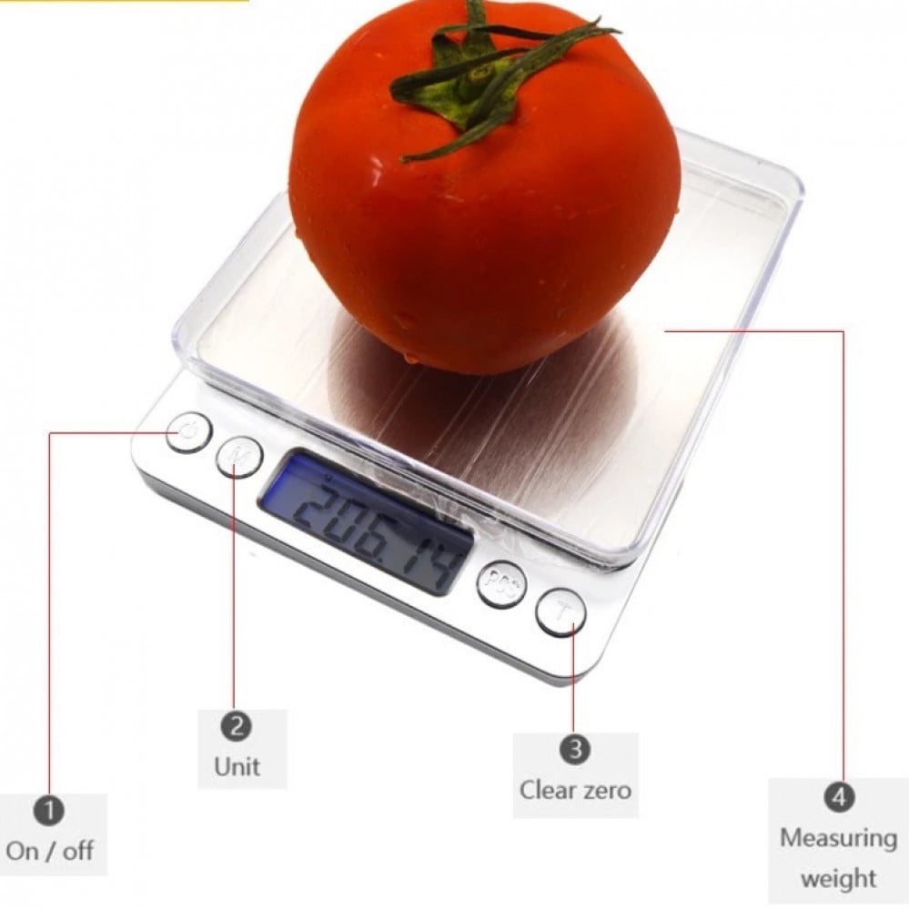 ميزان الكتروني صغير الحجم دقيق يزن من 0.1جرام وحتى 3 كيلو يعمل ببطاريتين AAA