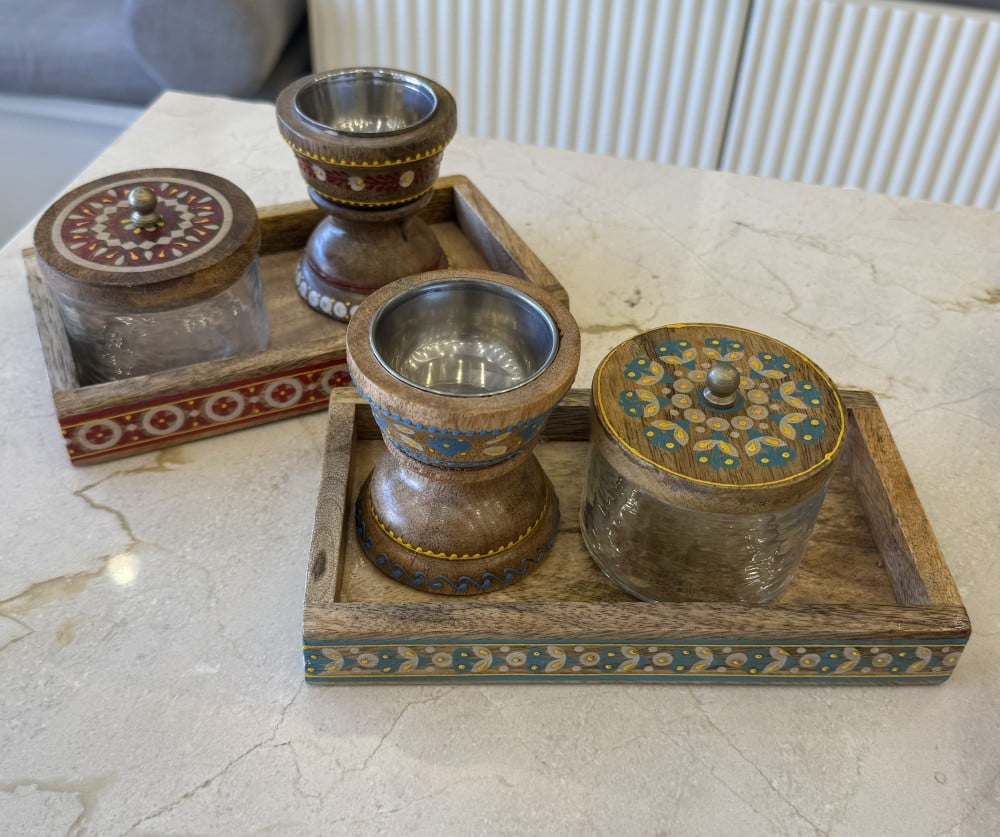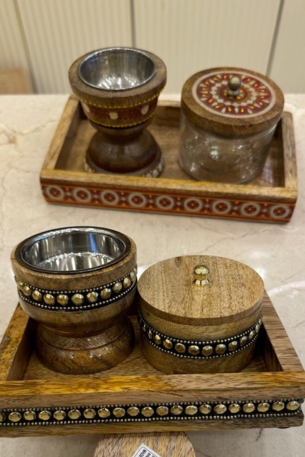 طقم مبخرة صناعة هندية جميلة للتوزيعات والهدايا يحتوي على مبخرة وعلبة للعود او البخور وطوفرية صغيرة ابعاد الطوفرية 20 سم * 11 سم