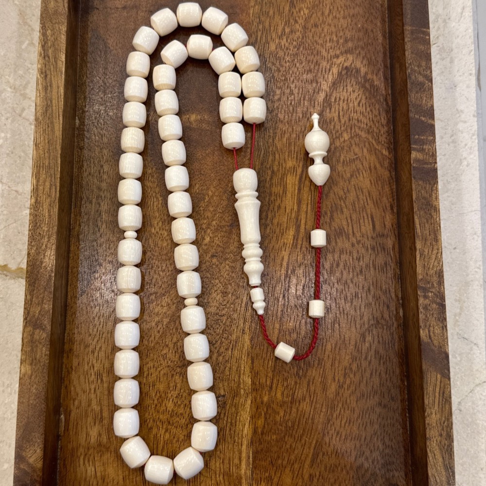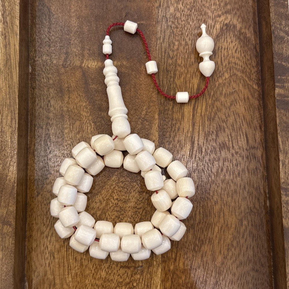 سبحة عاج ناب الفيل الطبيعي بوزن 63 جرام بقصة مميزة جداً عدد الخرز 45 خرزة
