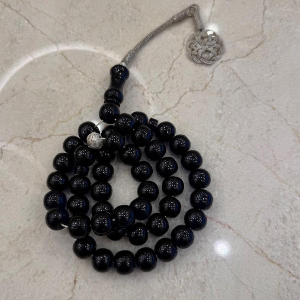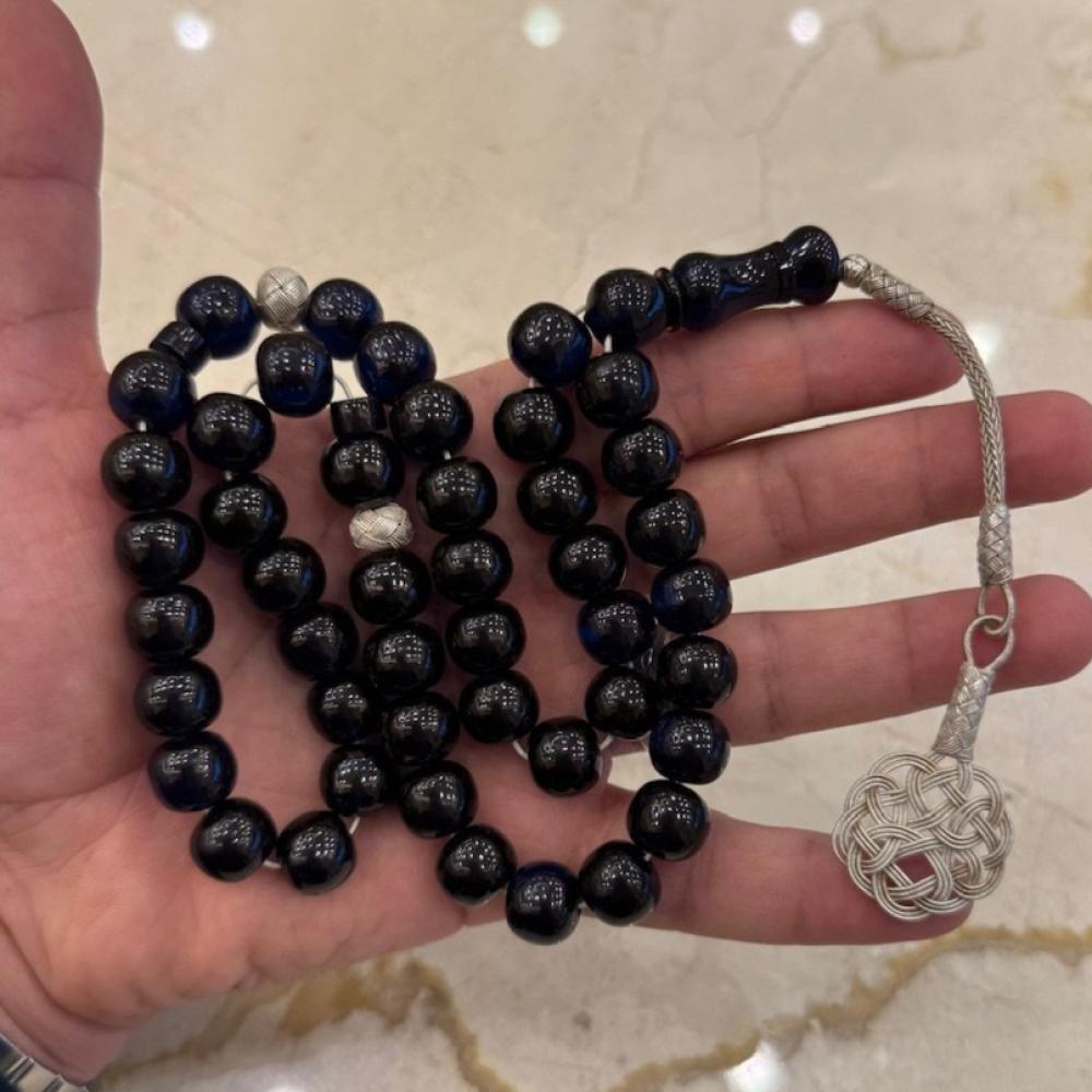 سبحة زعفرانية برائحة زعفرانية جميلة اللون ازرق حرباء الفواصل والكركوشة فضة طربزونية